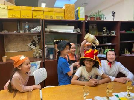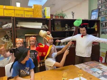 Июнь Идёт подготовка к театральному представлению. Руководитель театральной студии „На Краю“ Горбунова Галина Александровна в рамках дня „Барона Мюнхаузена“ провела мастер-класс по актёрскому мастерству с воспитанниками при школьного лагеря „Страна Здоровья“.