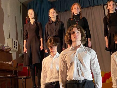 19 октября юные театралы школьной театральной студии "На краю" побывали на концерте "За великую Россию", который прошёл в Национальной библиотеке. Выступали республиканских и международного конкурса Валентина Двойнова, солисты Государственного театра оперы и балета Республики Коми, солисты Чувашского государственного театра оперы и балета.