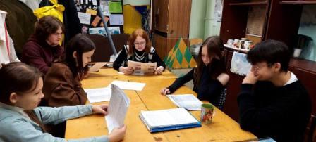 22 февраля на очередном занятии кружка, воспитанники школьной театральной студии "На краю" готовятся к "Театральной Весне"